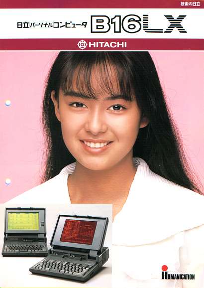 これは日立のラップトップのマシンです。なんか昔、後藤久美子さんがパソコン通信をするドラマを見た記憶があります。(いくら慌てているというドラマ中の設定だと言ってもモデムに話しかける奴がいるか?)(なお、このカタログもファイルを山辺信広氏より転送して頂き掲載することができました。)