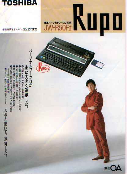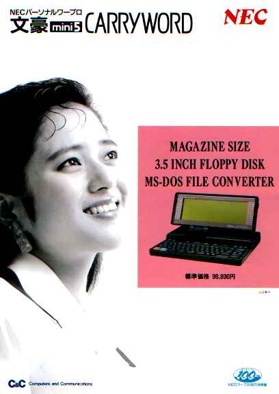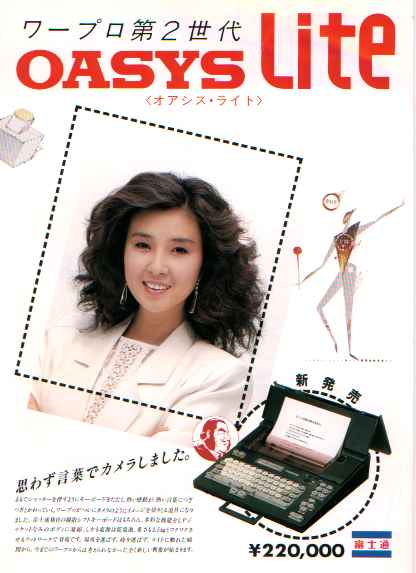 昔からパソコン/ワープロの広告には人気タレントの起用が盛んでした。もちろん、タモリ(FMシリーズ)や武田鉄矢(PC6001シリーズ)と言った男性タレントも結構幅を利かせていましたが、やはり記憶に残るのはかわいいアイドルタレントでしょう。