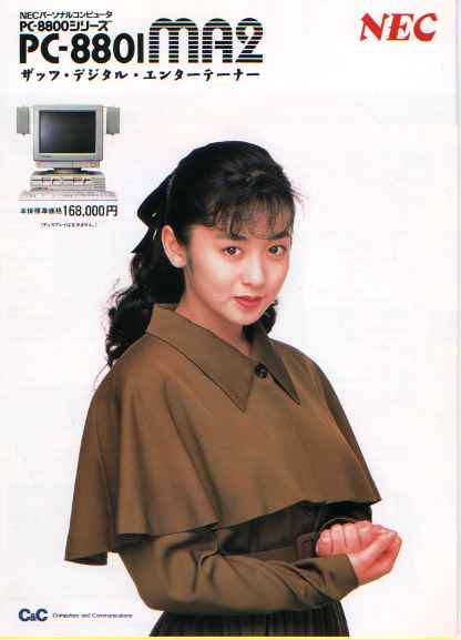すっかりホビーマシンになったPC88シリーズ。(FM音源、リズム音源、SSG音源、漢字辞書内蔵)宣伝は天下の斉藤由貴。さすが、NEC的確なリサーチをしていると思いますね。
