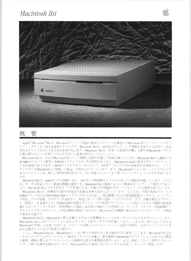 アップルが低価格路線を打ち出した機種 68000/8MHzというのはつらいけど・・・ まあ、当時20万以下というのは結構安かった。 90年10月発売 |