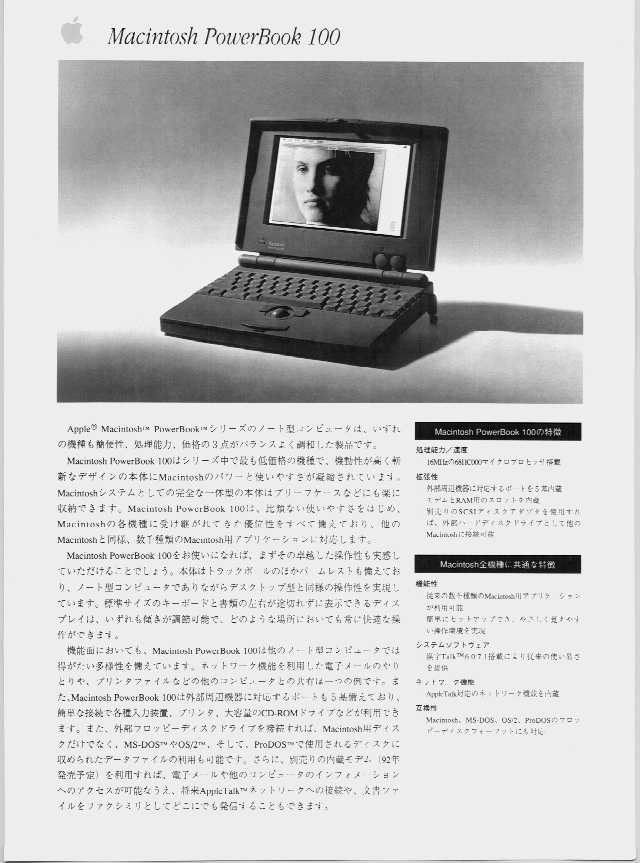 パワーブック第一世代の中位機 68030/16MHz 91年10月発売 |