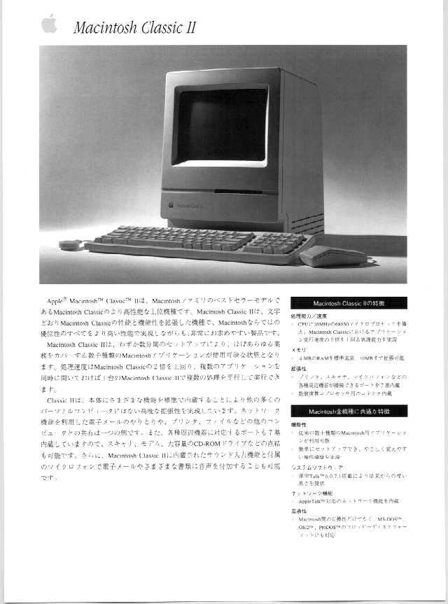 68030/16MHz搭載で旧クラシックよりは、高性能? 同じMPUでもSE/30にはかなり及ばない・・・ 91年10月発売 |
