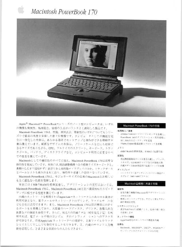パワーブック第一世代の軽量機2.3Kg Sonyが製造したそうな・・ 今でも結構よさそうな機種ですよね? 91年10月発売 |