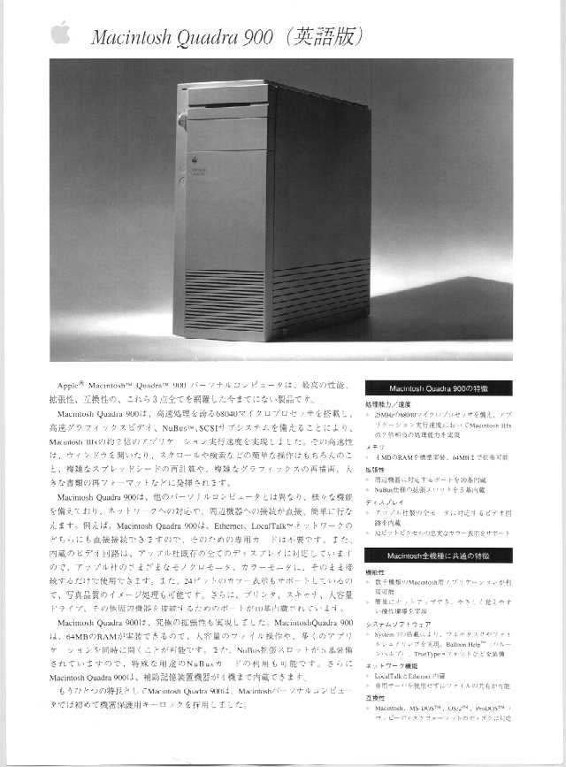 Quadra900の後継機で68040/33MHz搭載の最上位機種 以後840AVが登場まで最高性能でした 92年6月発売 |