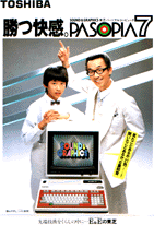 東芝のパソピア7の宣伝する横山親子・・・どうして、彼らをパソコンの宣伝に起用したのか非常に不可解です。まあ、もっとも似合わない彼らを選ぶことにより誰にだって使えるよということをアピールしたかったのでしょうか?